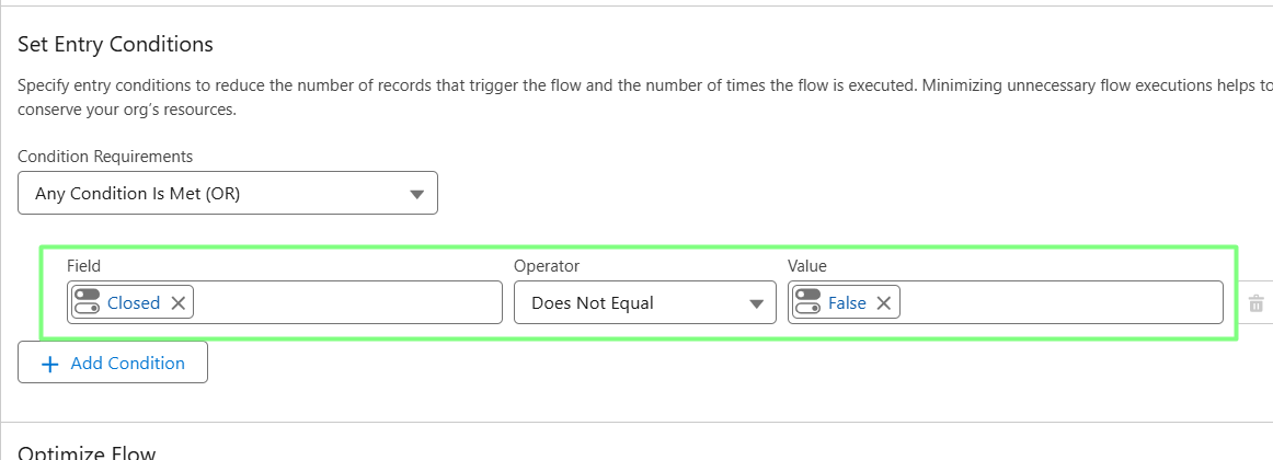 4. Add Criteria to Trigger the Flow: